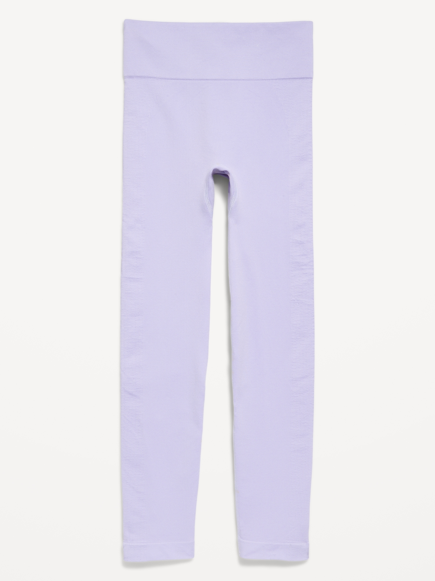Fitted High-Waisted 7/8-Length Seamless Performance Leggings for Girls: high-rise, elasticized waistband, #762147
