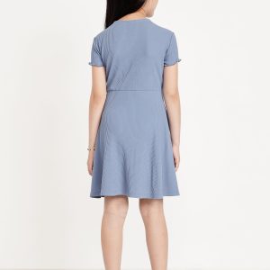 Short-Sleeve Ribbed Fit and Flare Dress for Girls