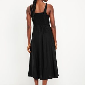 Fit & Flare Sleeveless Linen-Blend Midi Dress