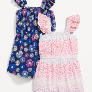 Sleeveless Ruffle-Trim One-Piece Romper 2-Pack for Toddler Girls