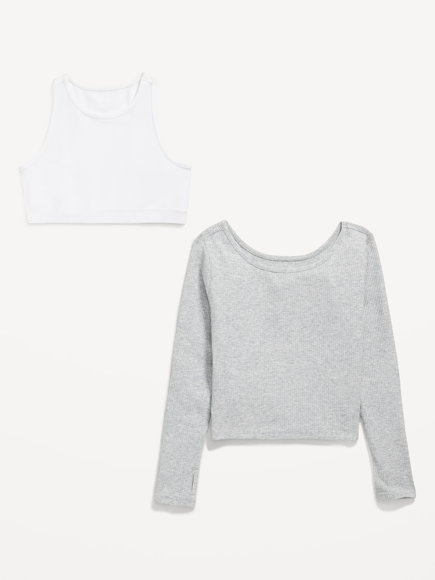 2-In-1 Ribbed Performance Top for Girls: boat neck, long sleeves, thumb-hole slits, tank top underneath, high neckline, sleeveless, #789715