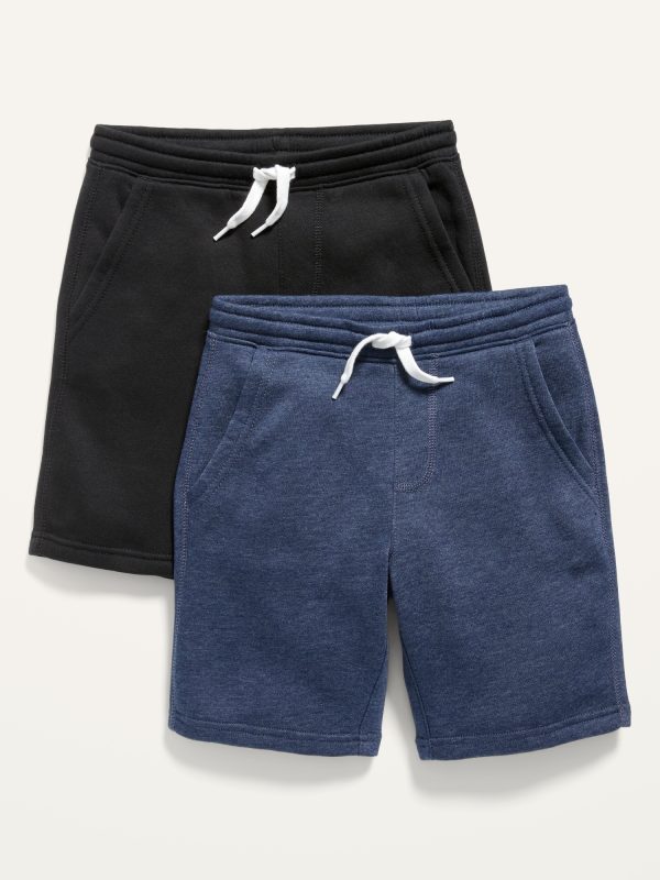 2-Pack Fleece Jogger Shorts for Boys (At Knee): Online exclusive!, Pack includes 2 fleece jogger shorts, each in a different color or print., Elasticized hem, with built-in drawcord., Diagonal on-seam, jersey-lined pockets., Faux fly., Soft, garment-washed fleece, with mechanical stretch for ease of movement., Easy pull-on style., #701743