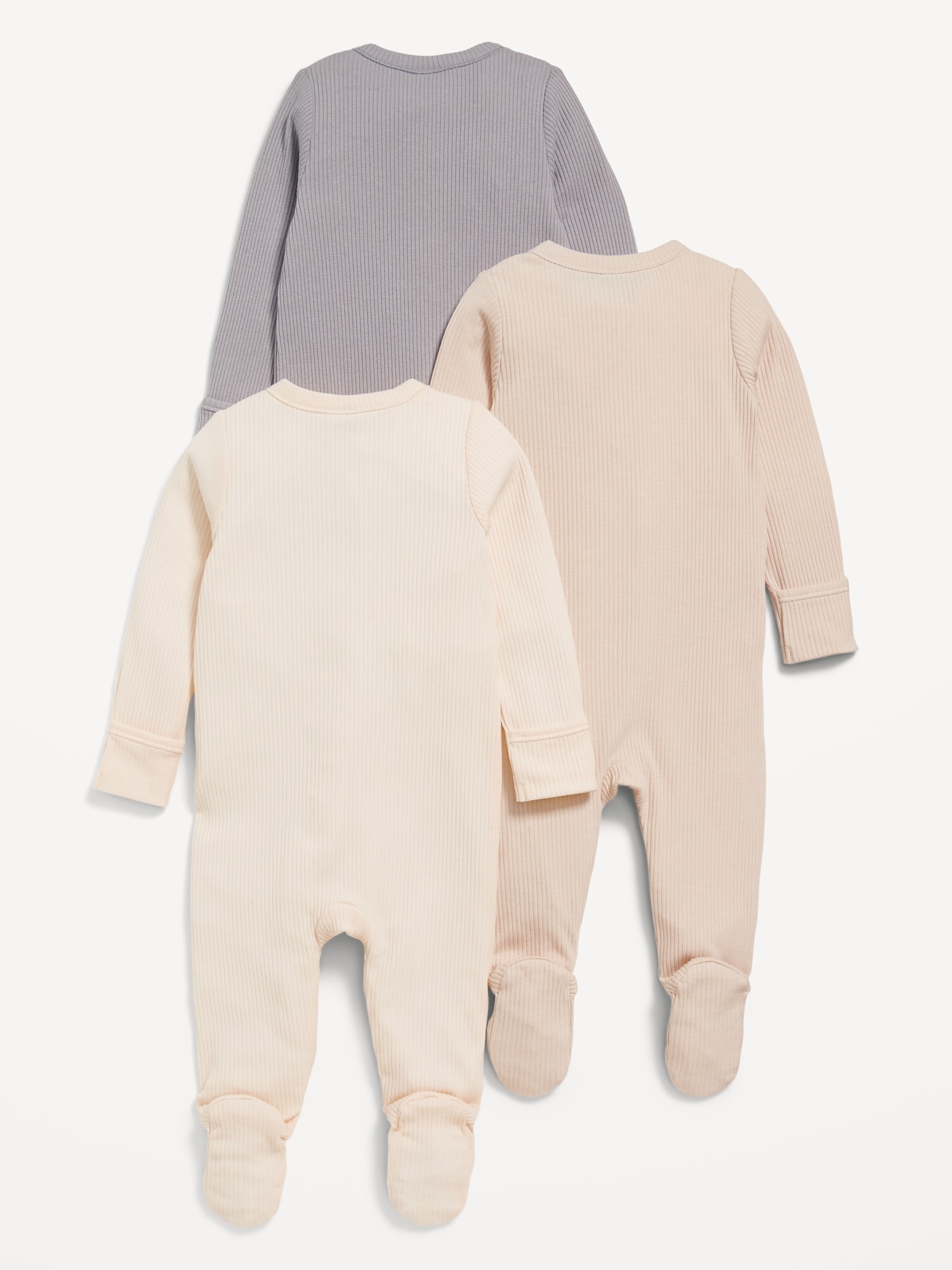 2-Way-Zip Sleep & Play Footed One-Piece 3-Pack for Baby: crew neck, long sleeves, fold-over mittens at each sleeve, reversible full-length zipper, sewn-in feet, online exclusive, #867828