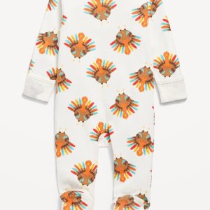 2-Way-Zip Sleep & Play Ruffle-Trim Footed One-Piece for Baby: rib-knit crew neck, long sleeves, fold-over mittens, reversible two-way zippersewn-in feet, #867712