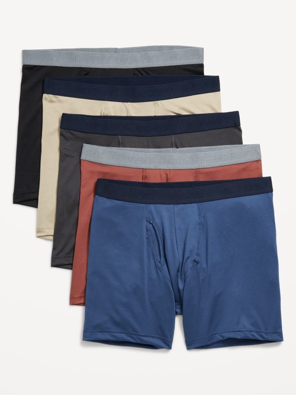 5-Pack Go-Dry Cool Performance Boxer Briefs — 5-inch inseam