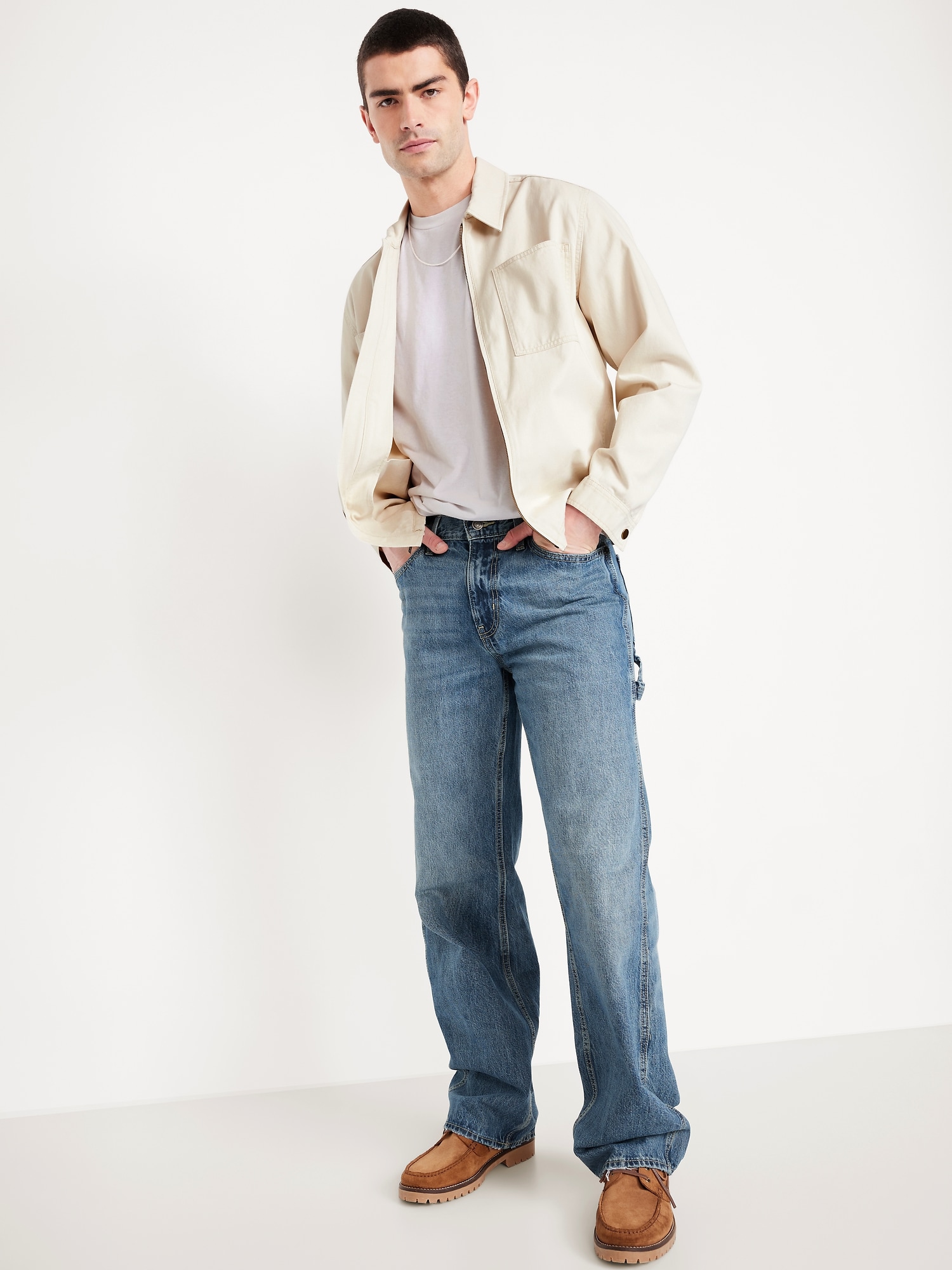 90’s Baggy Carpenter Jeans: zip fly, front scoop pockets, back patch pockets, left hammer loop, whiskering and fading, #788029