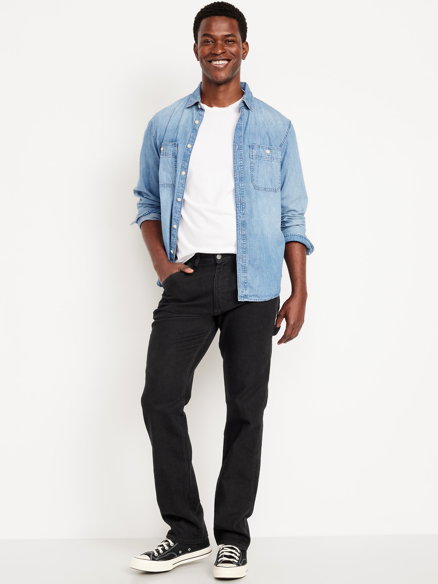 90's Straight Built-In Flex Carpenter Jeans: Relaxed through the hip and thigh, with a straight leg and vintage feel.button front, zip fly, hip pockets, back patch pockets, hammer loop, reinforced knees, #788044