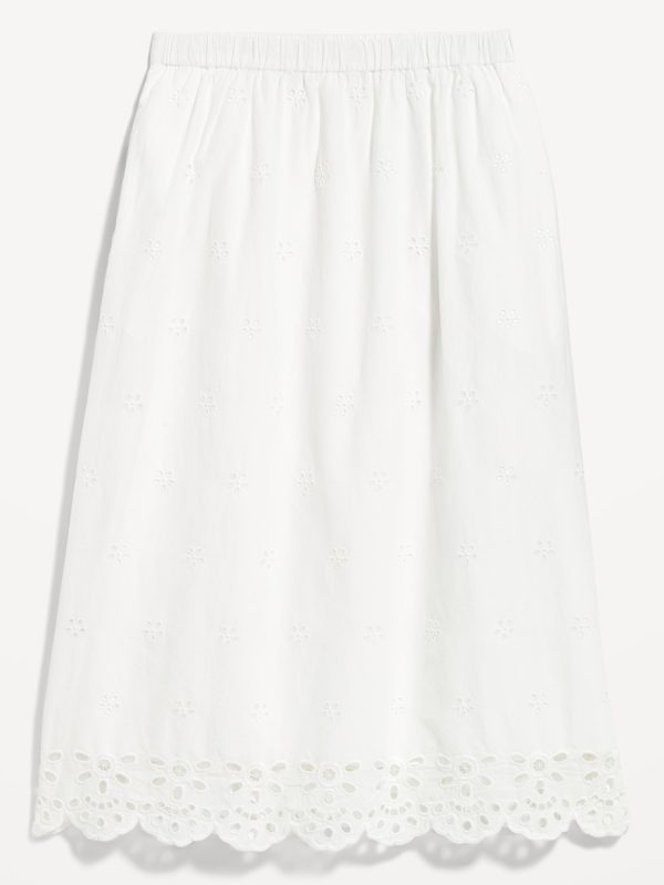 A-Line Eyelet Midi Skirt: elastic pull-on waistband, all-over embroidered detail, eyelet-scallop hem, #705284
