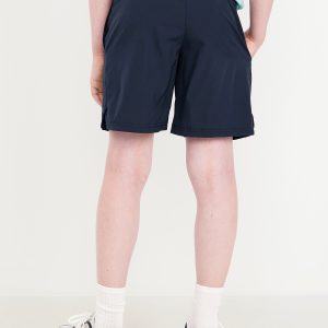 Above Knee Performance Shorts for Boys: elasticized waistband, functional drawstring, diagonal on-seam pockets, all-over checkered pattern, #762122