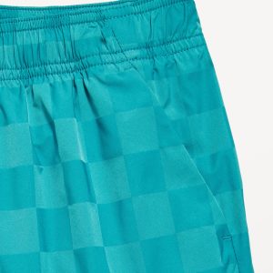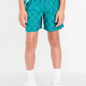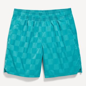 Above Knee Performance Shorts for Boys: elasticized waistband, functional drawstring, diagonal on-seam pockets, all-over checkered pattern, #762122