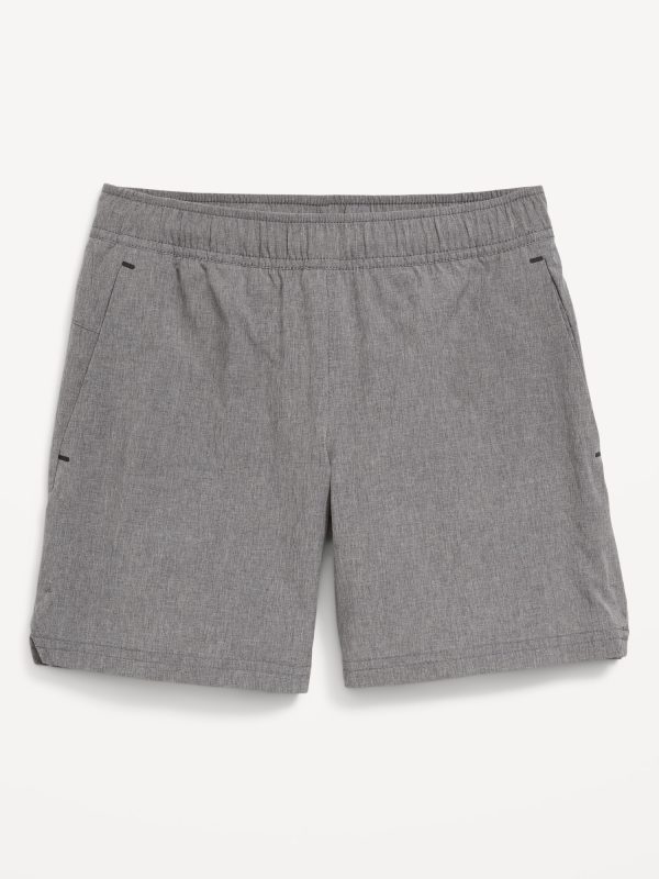 Above Knee StretchTech Shorts for Boys: elasticized waistband, interior drawstring, diagonal on-seam pockets, vented sides at hem, #695643