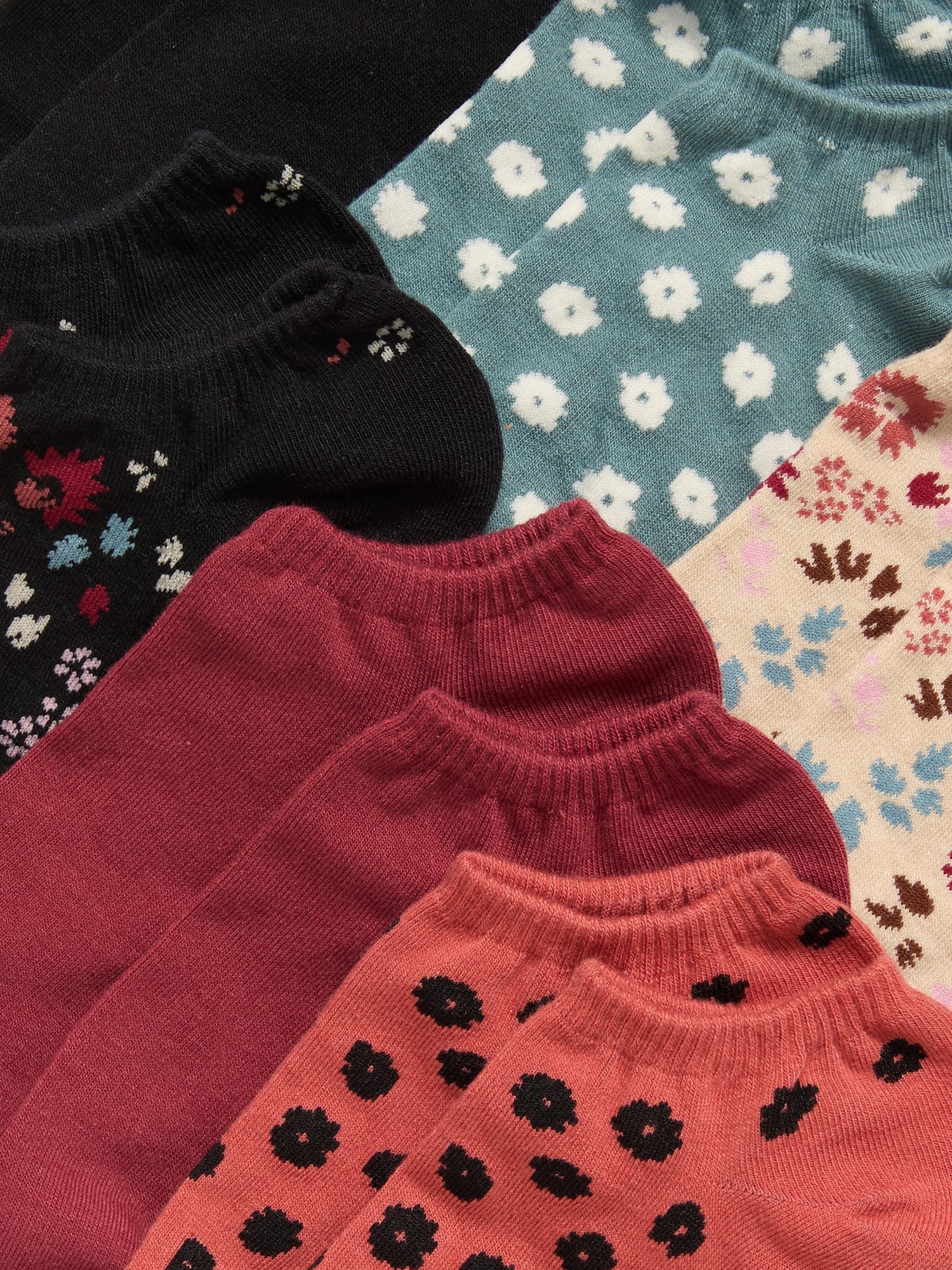 Ankle Socks 6-Pack for Women: includes 6 pairs of ankle socks, rib-knit openings, prints vary, #812466