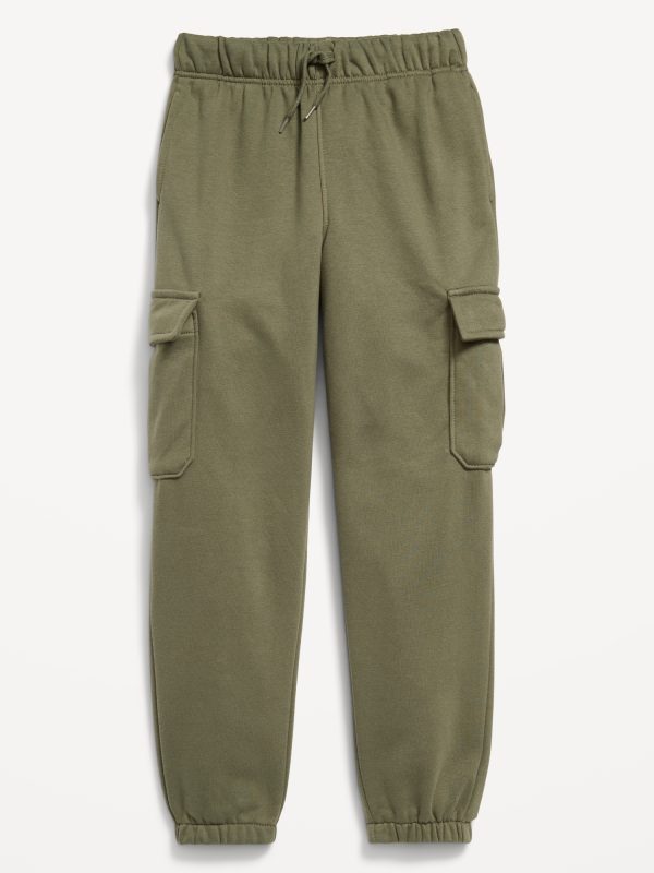Baggy Cargo Jogger Sweatpants for Boys: elasticized waist, functional drawstring, on-seam welt pockets, snap-button cargo pockets, cinched leg cuffs, #564944