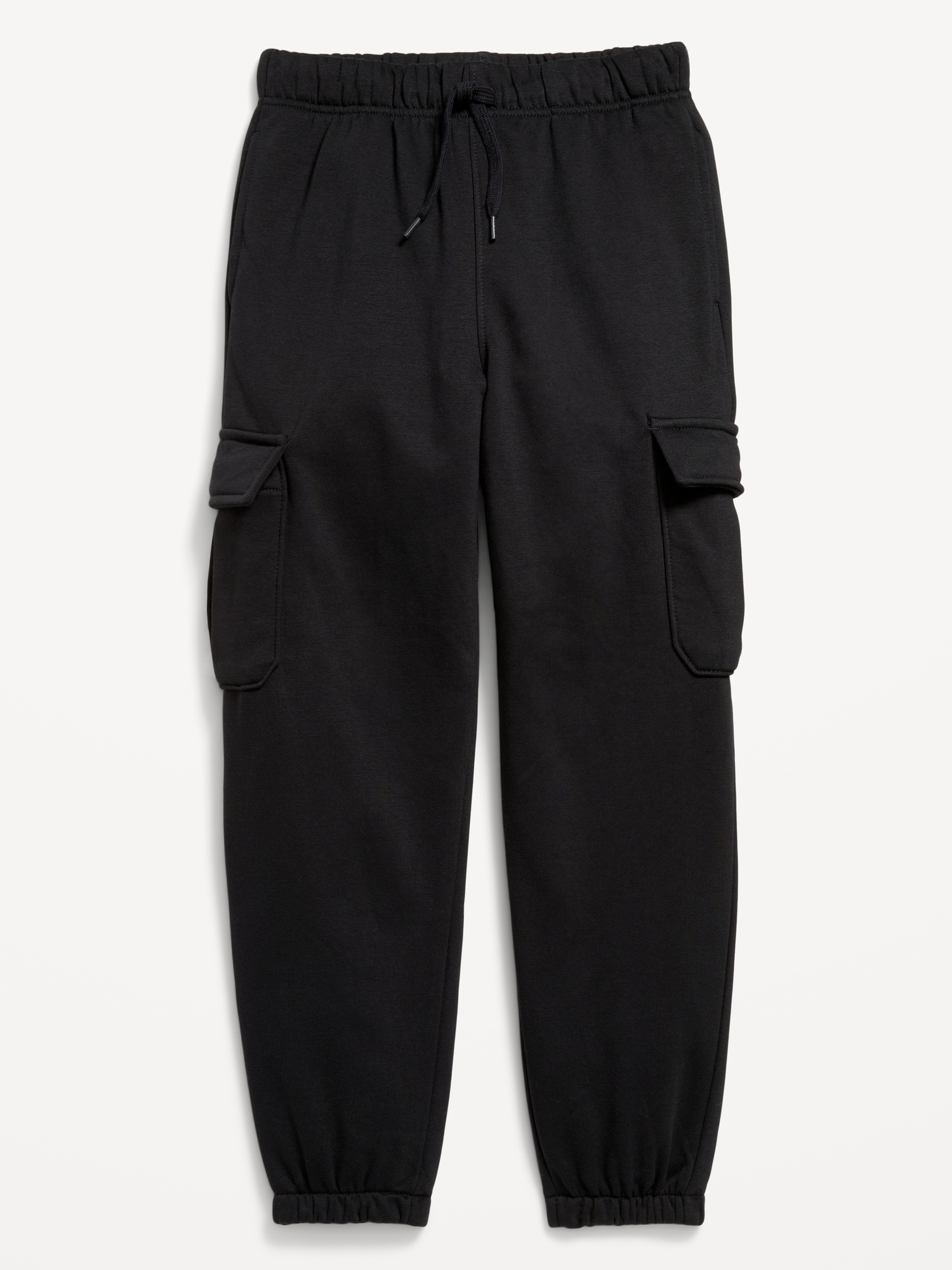 Baggy Cargo Jogger Sweatpants for Boys: elasticized waist, functional drawstring, on-seam welt pockets, snap-button cargo pockets, cinched leg cuffs, #564944
