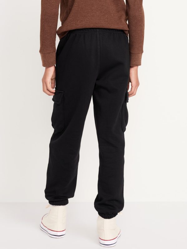 Baggy Cargo Jogger Sweatpants for Boys: elasticized waist, functional drawstring, on-seam welt pockets, snap-button cargo pockets, cinched leg cuffs, #564944