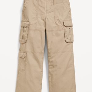 Baggy Cargo Ripstop Pants for Boys: interior adjustable waistband, regular button closure, zip fly, slanted side pockets, adhesive secure flap cargo pockets, patch pockets at back, #766354