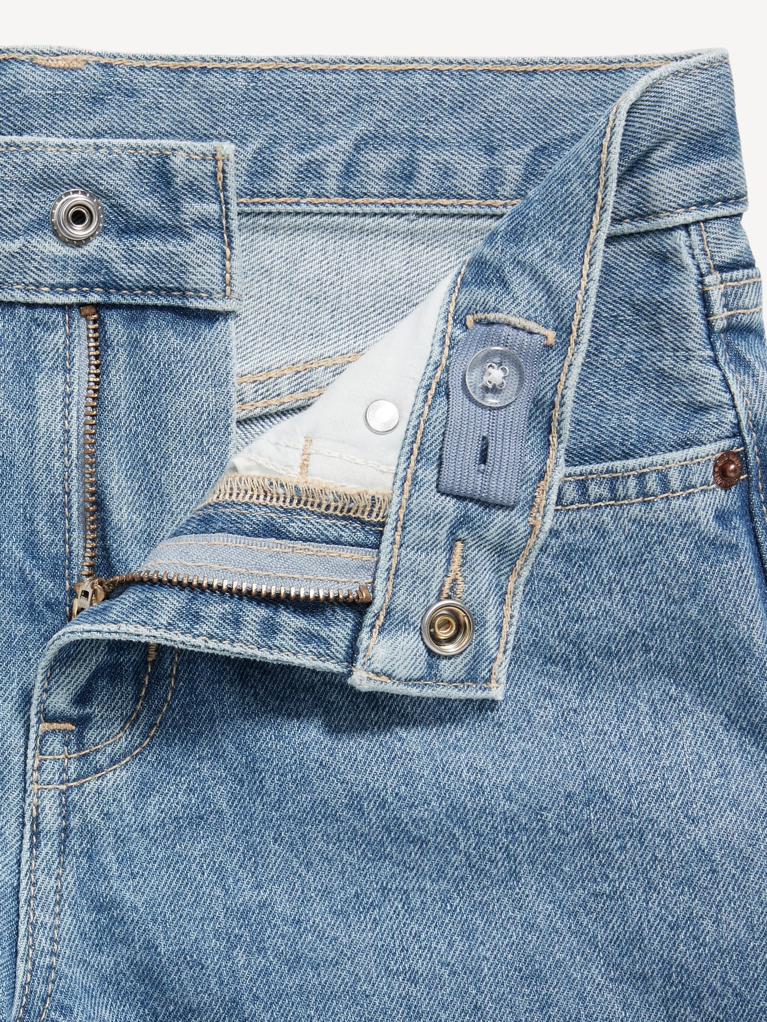 Baggy Non-Stretch Jeans for Boys: interior adjustable waistband, sizes 5-8 snap-button closure, regular button closure sizes 10-20, zip fly, diagonal pockets, utility patch pockets at back, built-in hammer loop at left leg, #805572