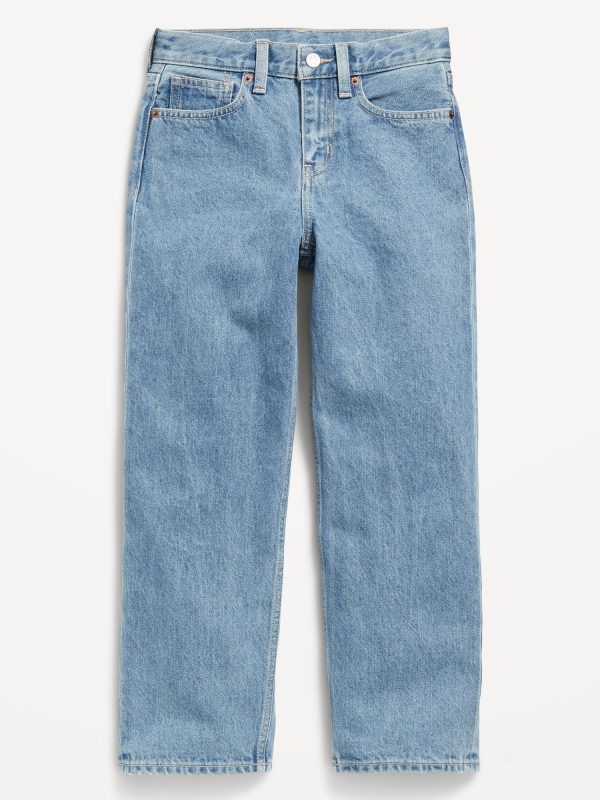 Baggy Non-Stretch Jeans for Boys: interior adjustable waistband, sizes 5-8 snap-button closure, regular button closure sizes 10-20, zip fly, diagonal pockets, utility patch pockets at back, built-in hammer loop at left leg, #805572