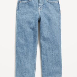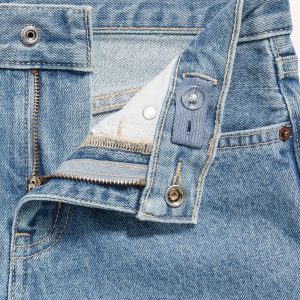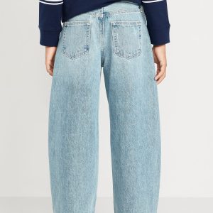 Baggy Non-Stretch Jeans for Boys: interior adjustable waistband, sizes 5-8 snap-button closure, regular button closure sizes 10-20, zip fly, diagonal pockets, utility patch pockets at back, built-in hammer loop at left leg, #805572