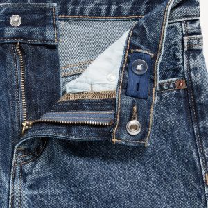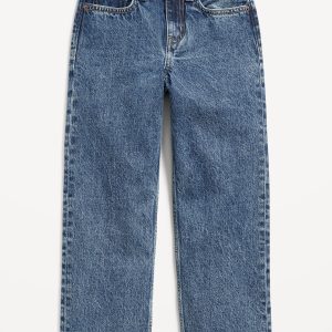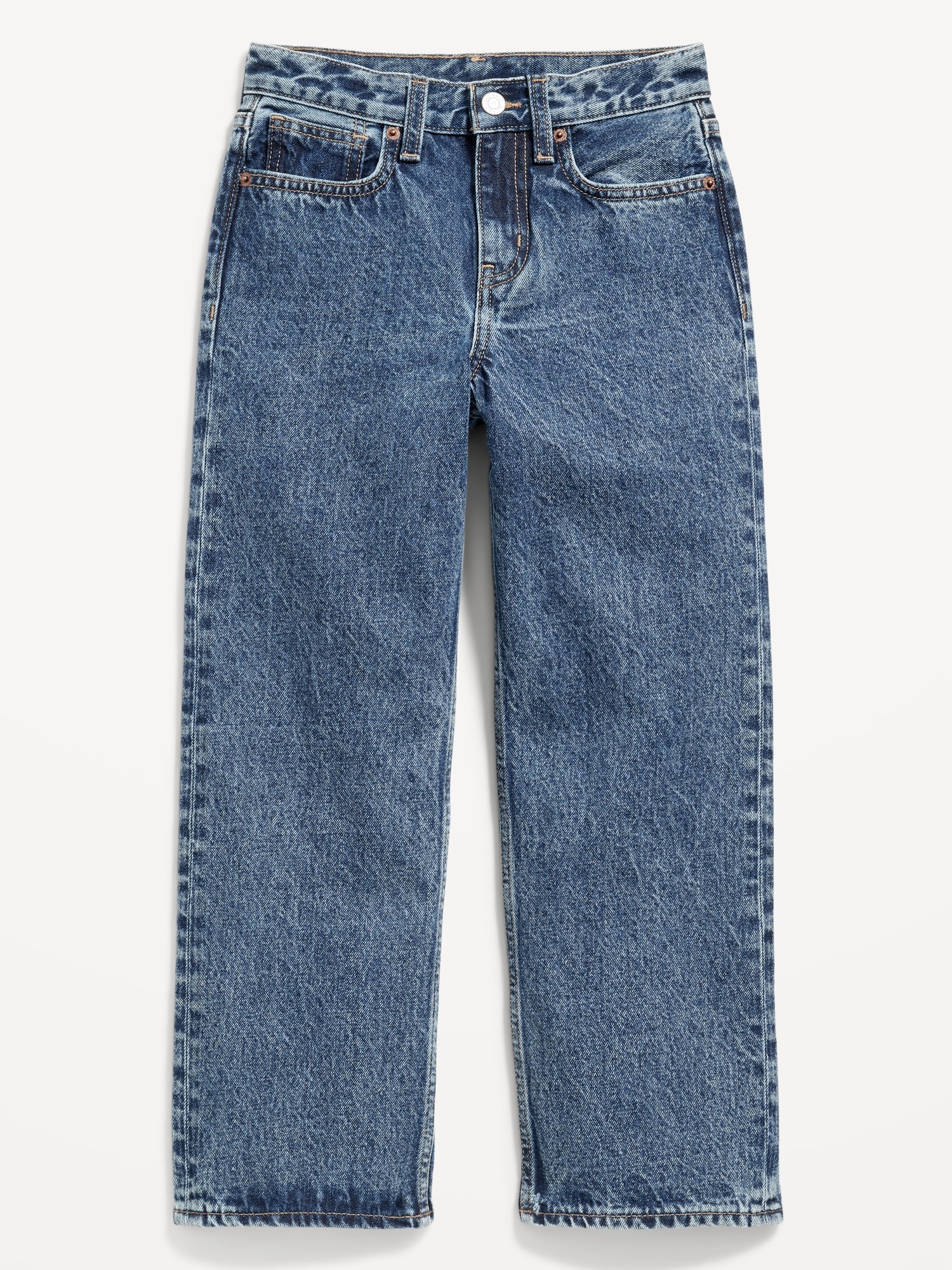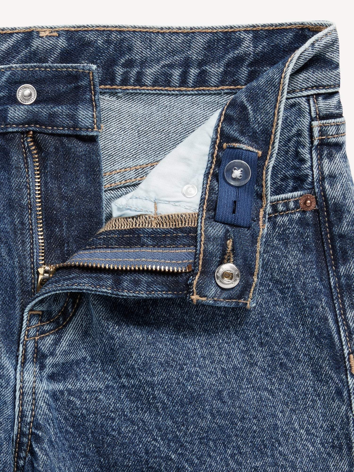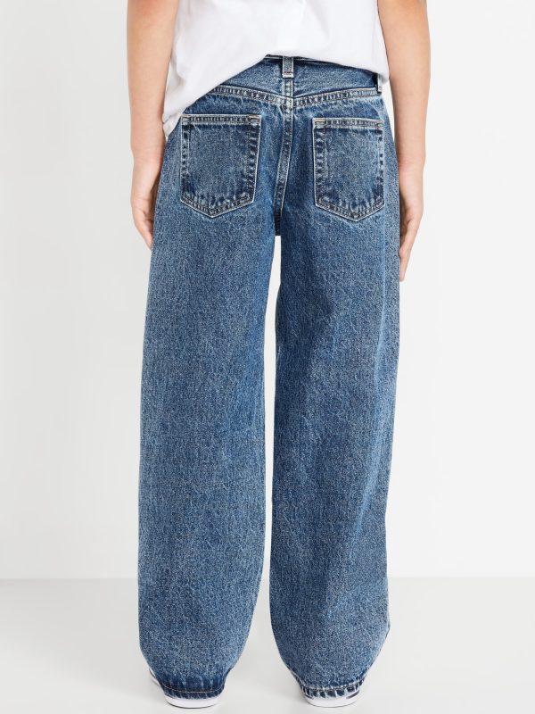 Baggy Non-Stretch Jeans for Boys: interior adjustable waistband, sizes 5-8 snap-button closure, regular button closure sizes 10-20, zip fly, diagonal pockets, utility patch pockets at back, built-in hammer loop at left leg, #805572