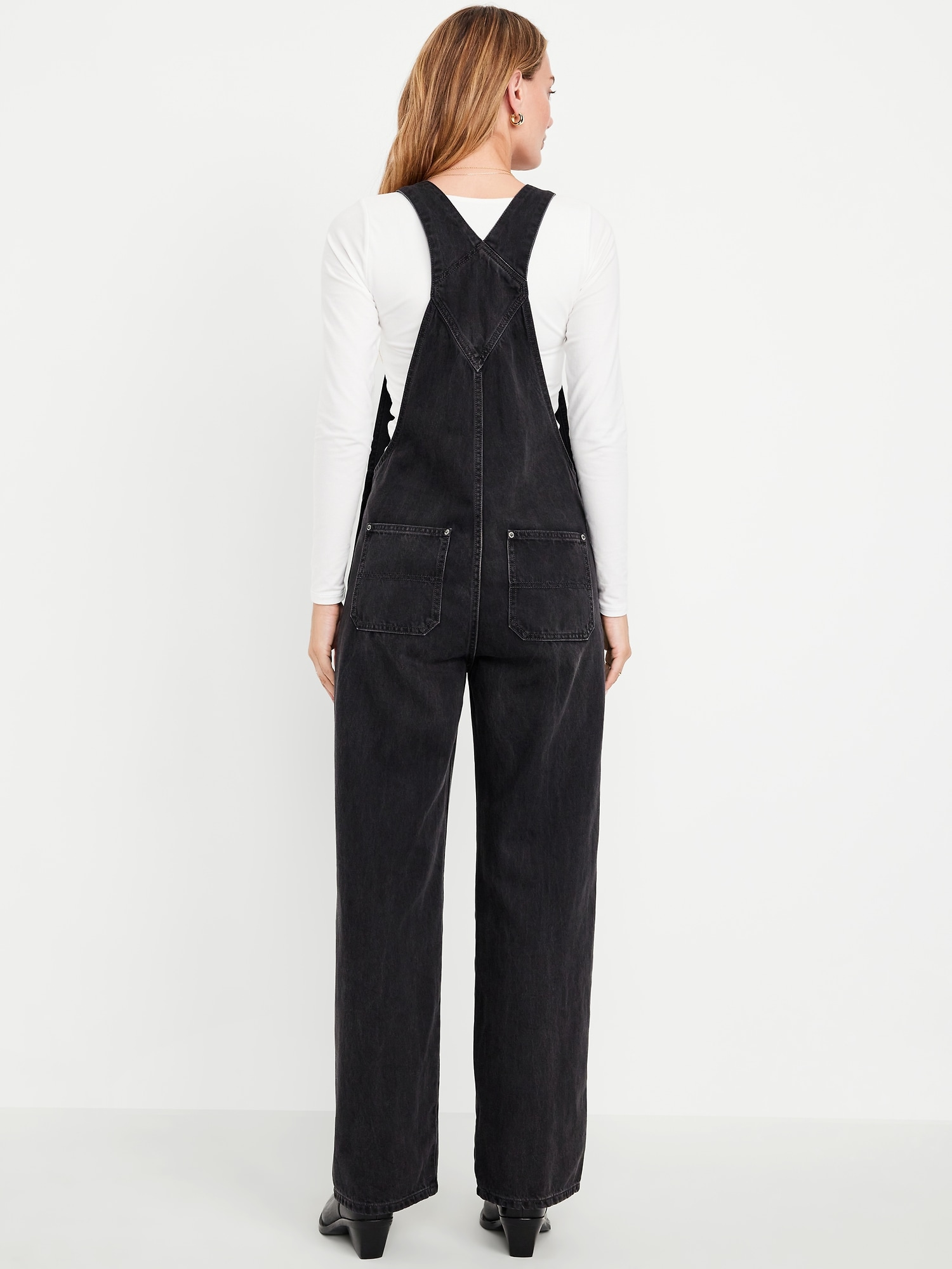Baggy Wide-Leg Jean Overalls: The oversized jean overall of your teenage dreams.adjustable buckled straps, square neck, v-back, bib pocket, buttons at hip, front utility pockets, back patch pockets, #846922