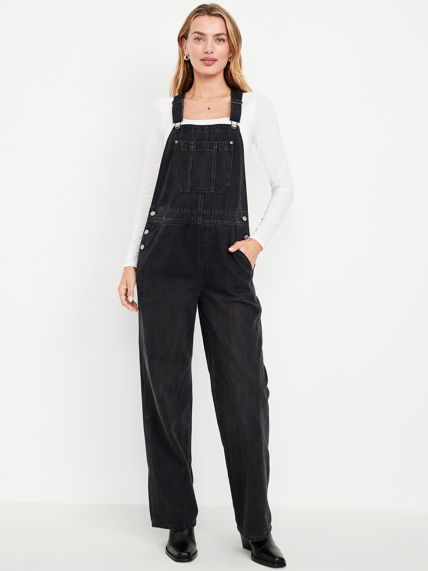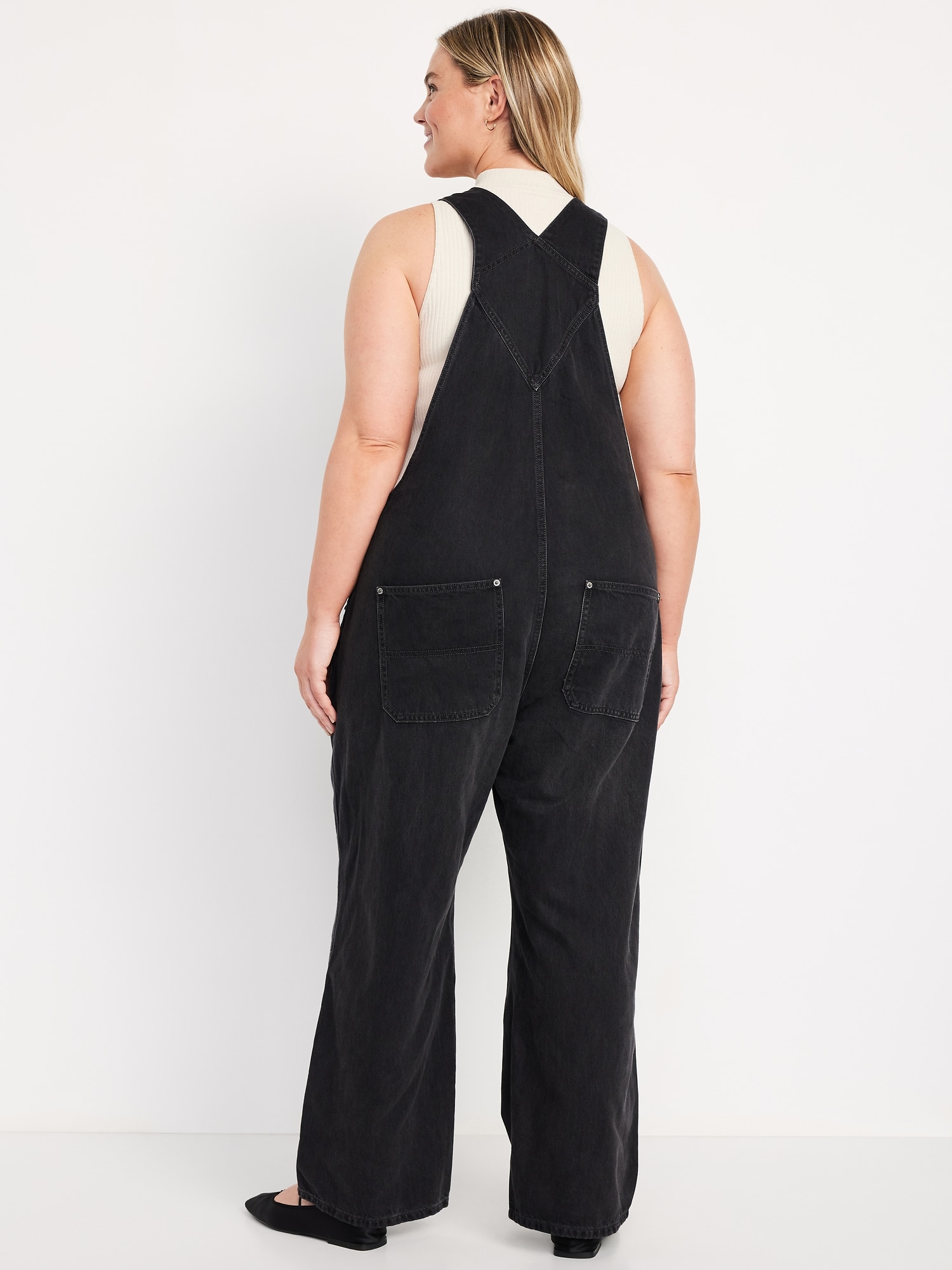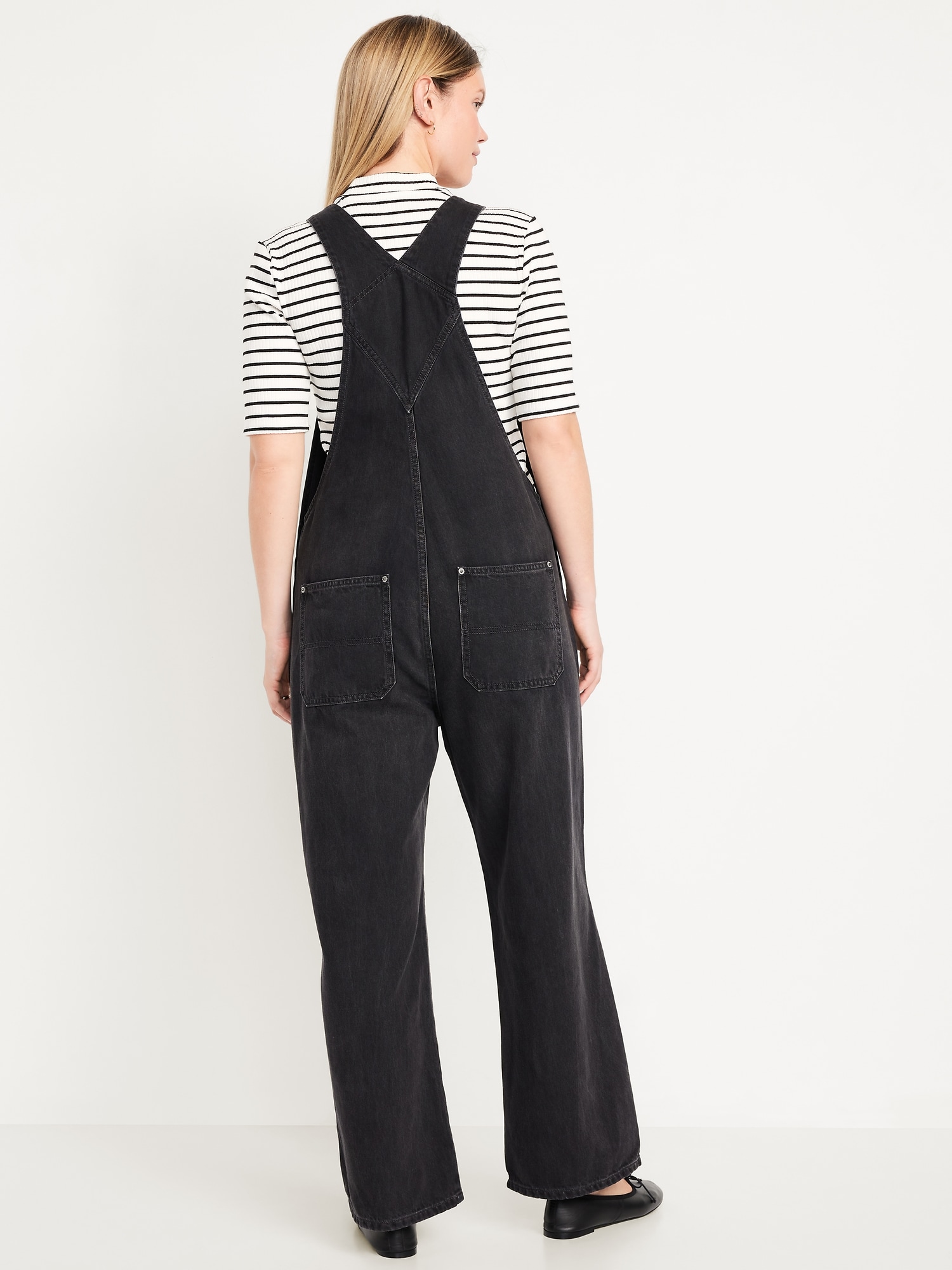 Baggy Wide-Leg Jean Overalls: The oversized jean overall of your teenage dreams.adjustable buckled straps, square neck, v-back, bib pocket, buttons at hip, front utility pockets, back patch pockets, #846922