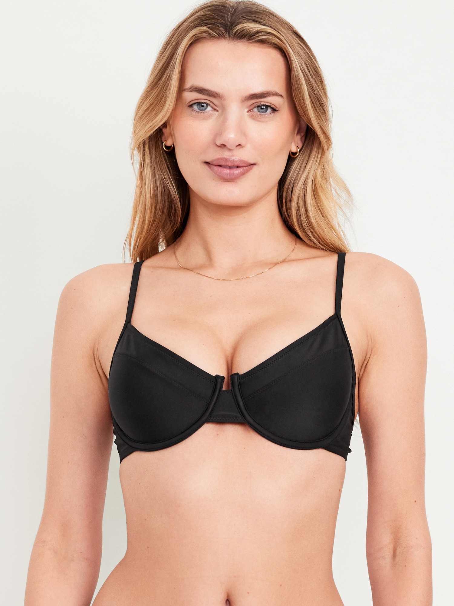 Balconette Swim Top: adjustable straps, underwire support, removable pads, back clasp, #798210