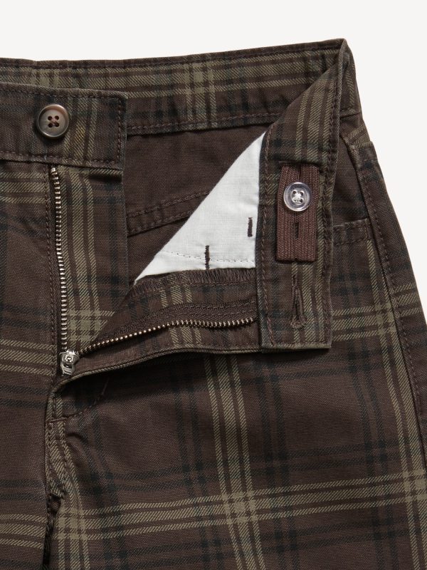Below Knee Baggy Canvas Shorts for Boys: interior adjustable waistband, regular button closure, zip fly, scoop pockets and coin pocket in front, patch pockets in back, below knee, #766370