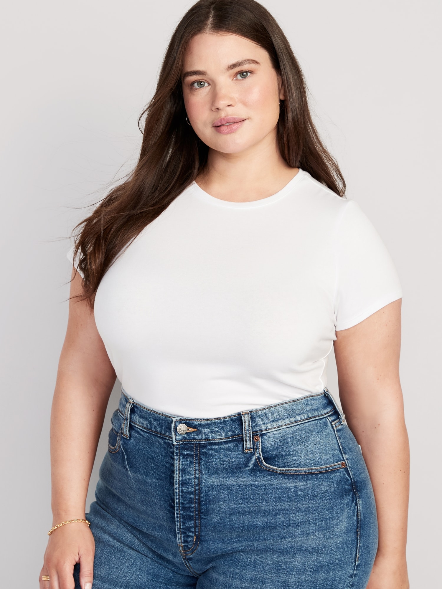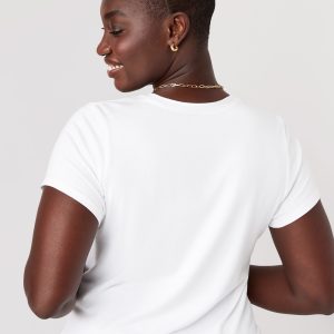 Bestee Crop T-Shirt: A classic, slim fit that’s instantly polished.rib-knit crew neck, short sleeves, #537378