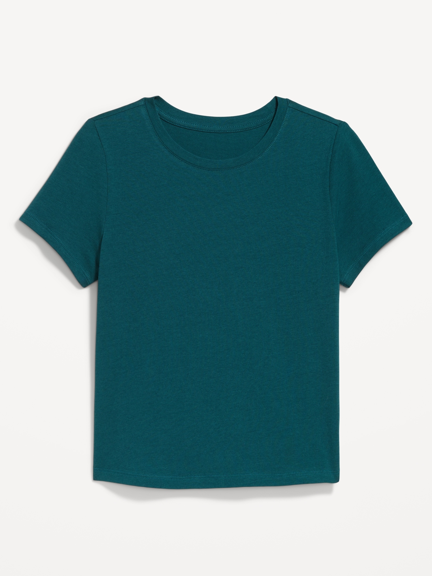 Bestee Crop T-Shirt: A classic, slim fit that’s instantly polished.rib-knit crew neck, short sleeves, #537378