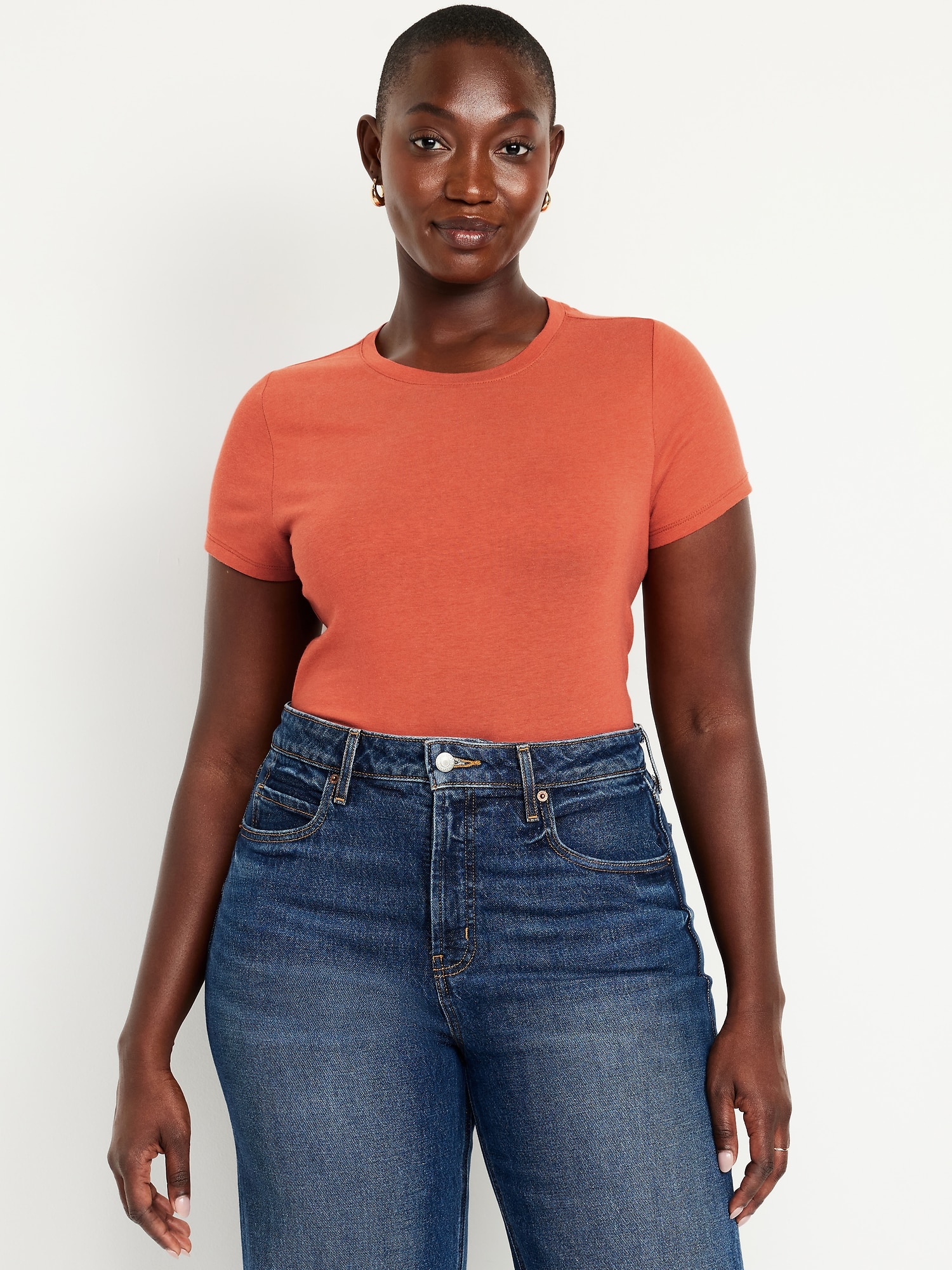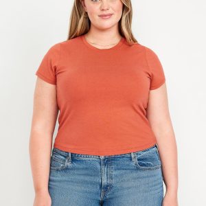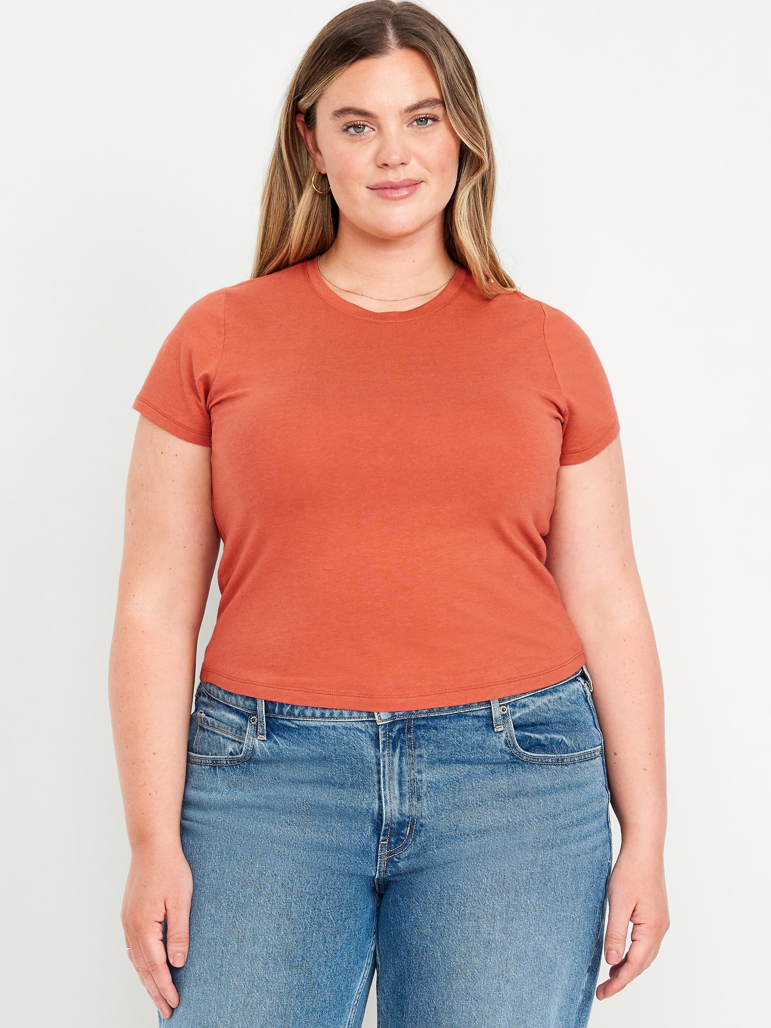 Bestee Crop T-Shirt: A classic, slim fit that’s instantly polished.rib-knit crew neck, short sleeves, #537378