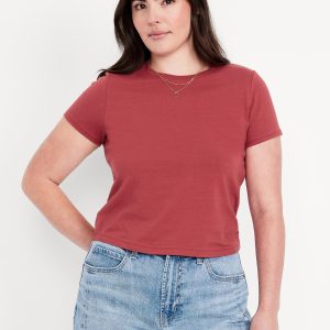 Bestee Crop T-Shirt: A classic, slim fit that’s instantly polished.rib-knit crew neck, short sleeves, #537378