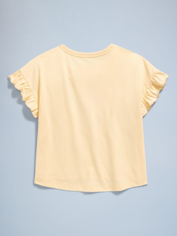 Birthday Graphic T-Shirt for Toddler Girls: The (Bestest) Birthday Shop!crew neck, short ruffle sleeves, graphic at front, rounded hem, #689939