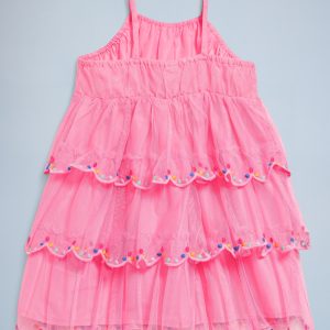 Birthday Sleeveless Tulle Fit and Flare Dress for Toddler Girls: The (Bestest) Birthday Shop!rounded neckline, thin straps, mesh tulle tiers, scallop hem, multicolor dots along hem, online exclusive, #694821
