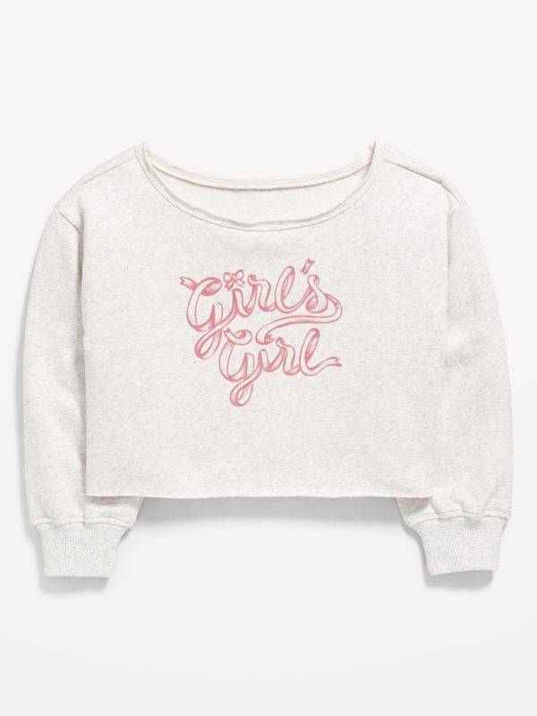 Boat-Neck Graphic Sweatshirt for Girls: boat neck, long sleeves, drop shoulders, graphic at front, #788048