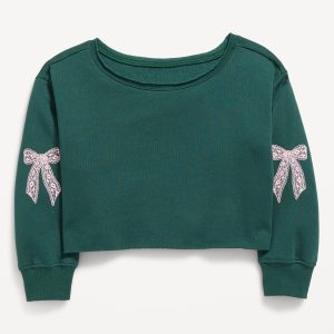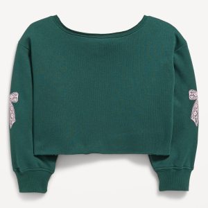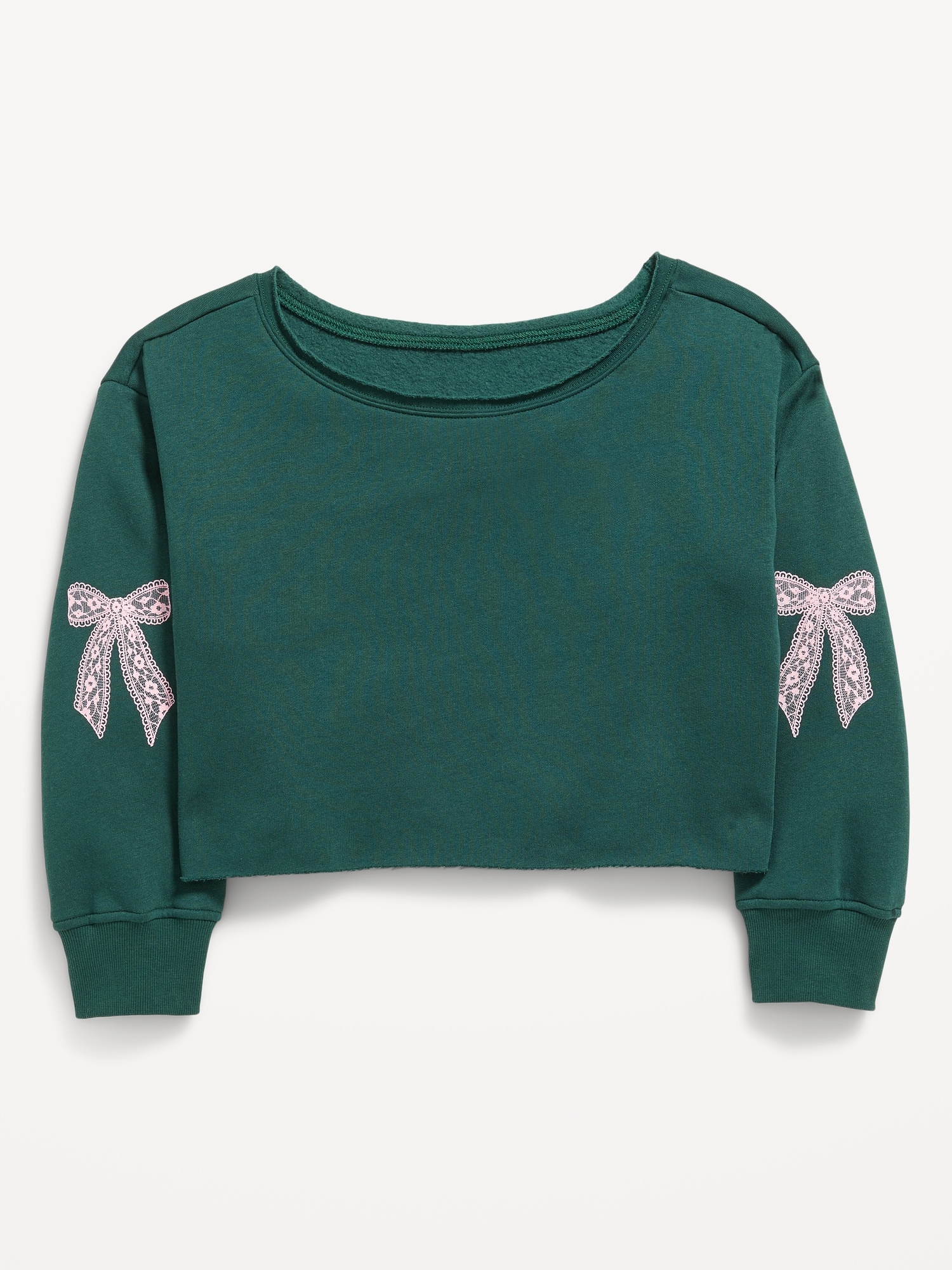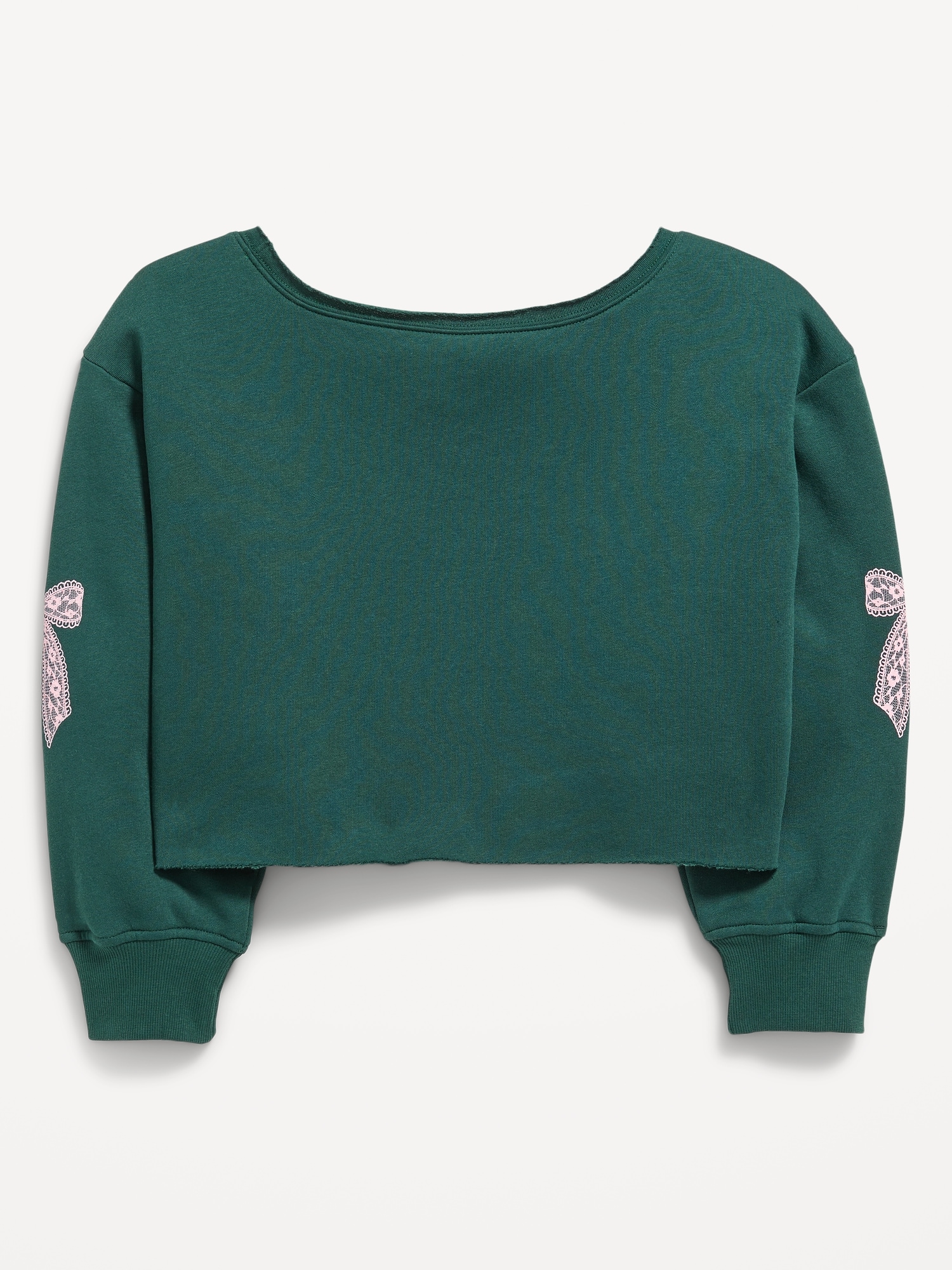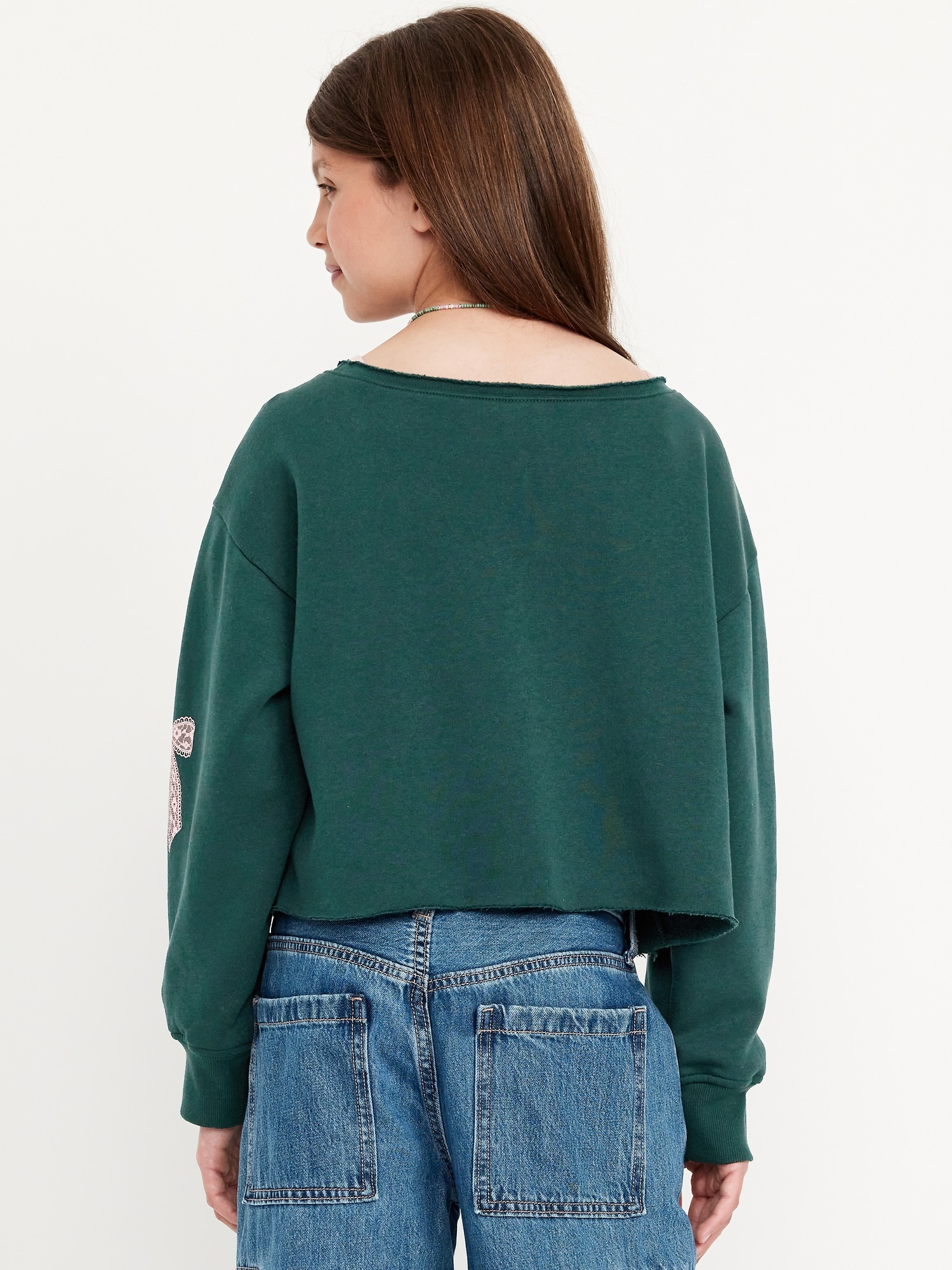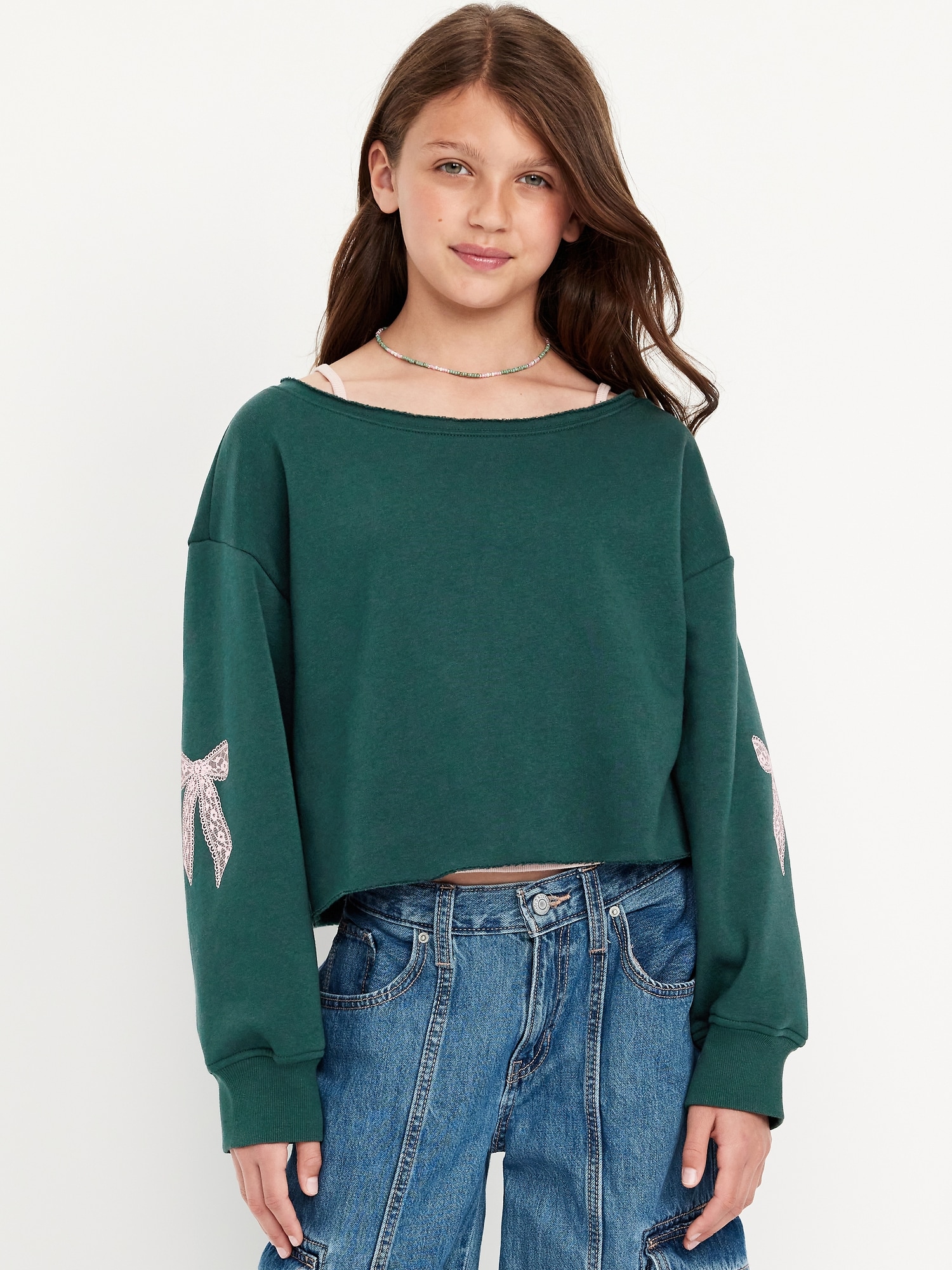 Boat-Neck Graphic Sweatshirt for Girls: boat neck, long sleeves, drop shoulders, graphic at front, #788048