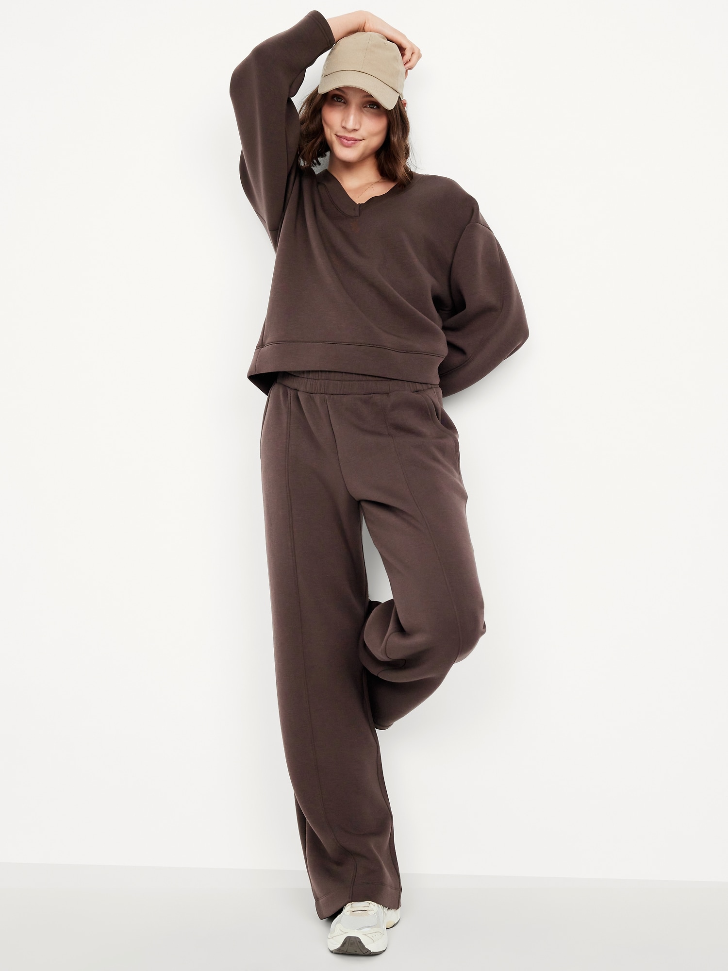 Bounce Fleece Cocoon Sweatshirt: Featuring Bounce Fleece. A smooth, cooling finish that feels good and looks chic everywhere you go.v-neck, long sleeves, pullover style, breathable, #805760
