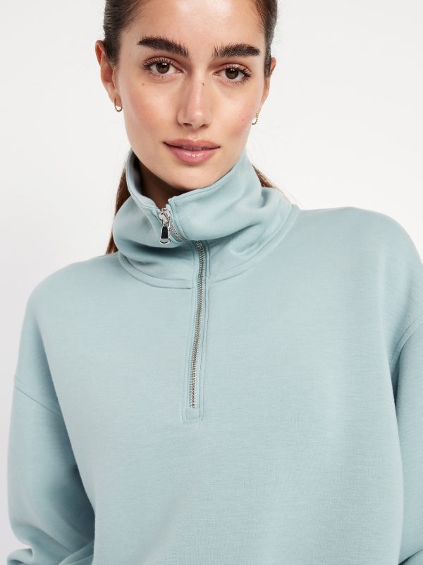 Bounce Fleece Half-Zip Pullover Sweatshirt: Featuring Bounce Fleece. A smooth, cooling finish that feels good and looks chic everywhere you go.half-zip collar, drop-shoulder sleeves, on-seam pockets, pull-over style, breathable, #583079