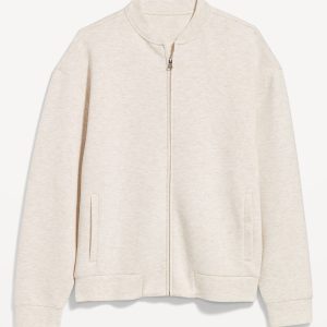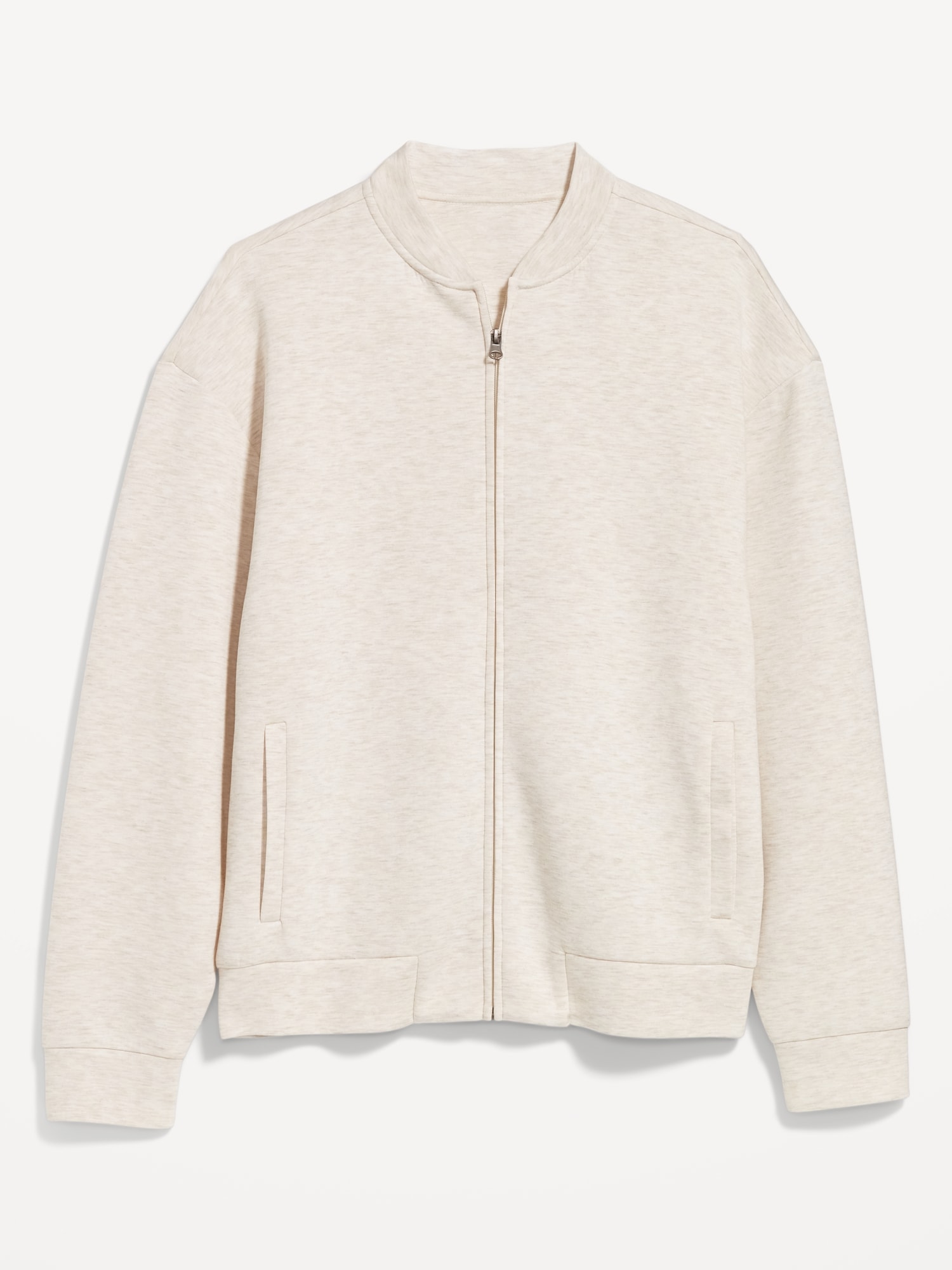 Bounce Fleece Oversized Bomber Jacket: banded collar, long drop-shoulder sleeves, full-zip front, vertical welt pockets, #787948