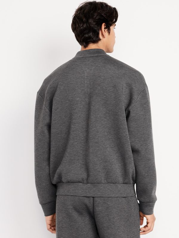 Bounce Fleece Oversized Bomber Jacket: banded collar, long drop-shoulder sleeves, full-zip front, vertical welt pockets, #787948