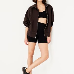 Bounce Fleece Zip Jacket: Featuring Bounce Fleece. A smooth, cooling finish that feels good and looks chic everywhere you go.mock neck, long drop-shoulder sleeves, on-seam pockets, full-zip front, breathable, #805759