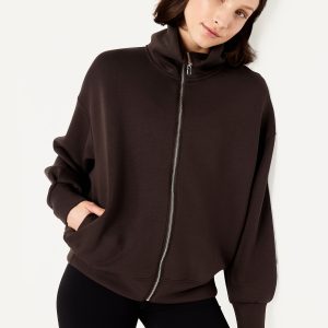 Bounce Fleece Zip Jacket: Featuring Bounce Fleece. A smooth, cooling finish that feels good and looks chic everywhere you go.mock neck, long drop-shoulder sleeves, on-seam pockets, full-zip front, breathable, #805759