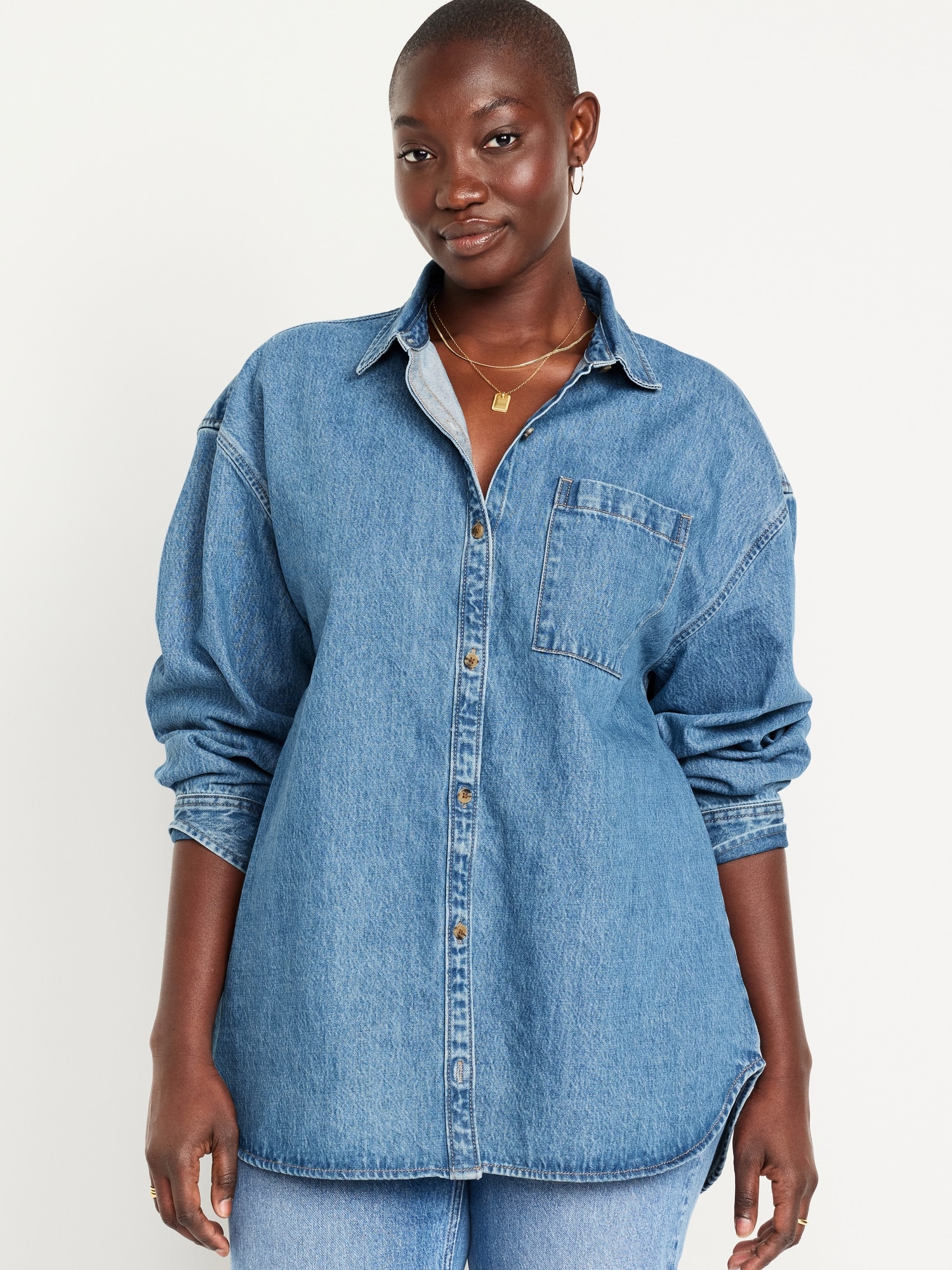 Boyfriend Button-Down Jean Tunic