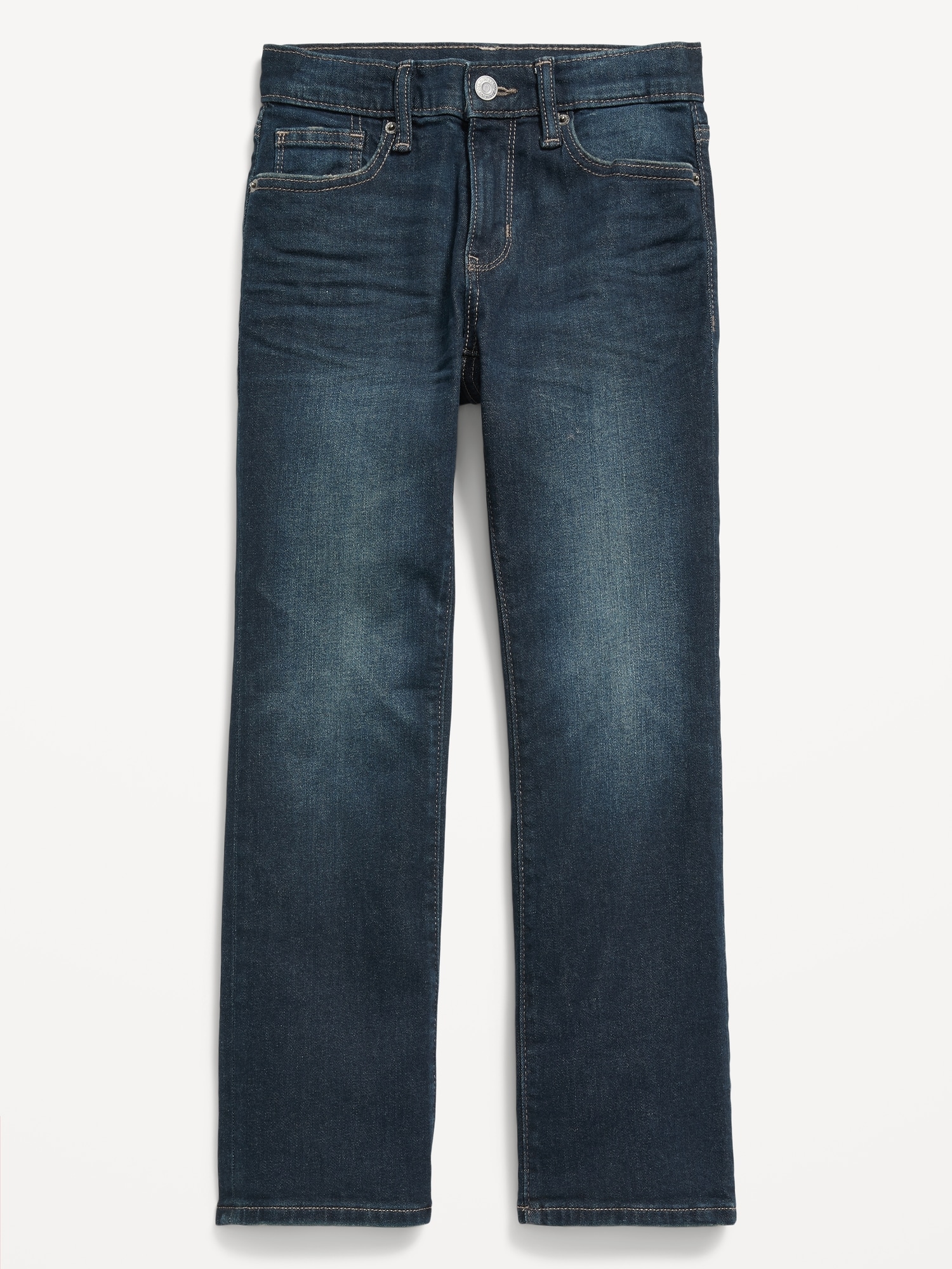Built-In Flex Boot-Cut Jeans for Boys: Comfy, durable, wear-on-repeat faves., Interior adjustable waistband expands for a perfect fit., Snap-button closure in sizes 5-8; regular button closure in sizes 10-20., Scoop pockets and coin pocket in front; patch pockets in back., Engineered with innovative Built-In Flex stretch technology. Equal parts comfort & movement., Built-In Tough fabric has 2x the strength of regular denim!, Durable denim, with comfortable stretch and contrast topstitching., We’ve updated the fabric content on select colors & patterns of this style. Select inventory may reflect a slightly different fabric content of 91% cotton, 7% recycled cotton, 2% spandex., #543030