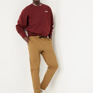 Built-In Flex Modern Jogger Pants: elasticized waistband, adjustable drawstring, faux fly, diagonal hip pockets, welt back pockets, elasticized cuffs, easy pull-on style, #598431