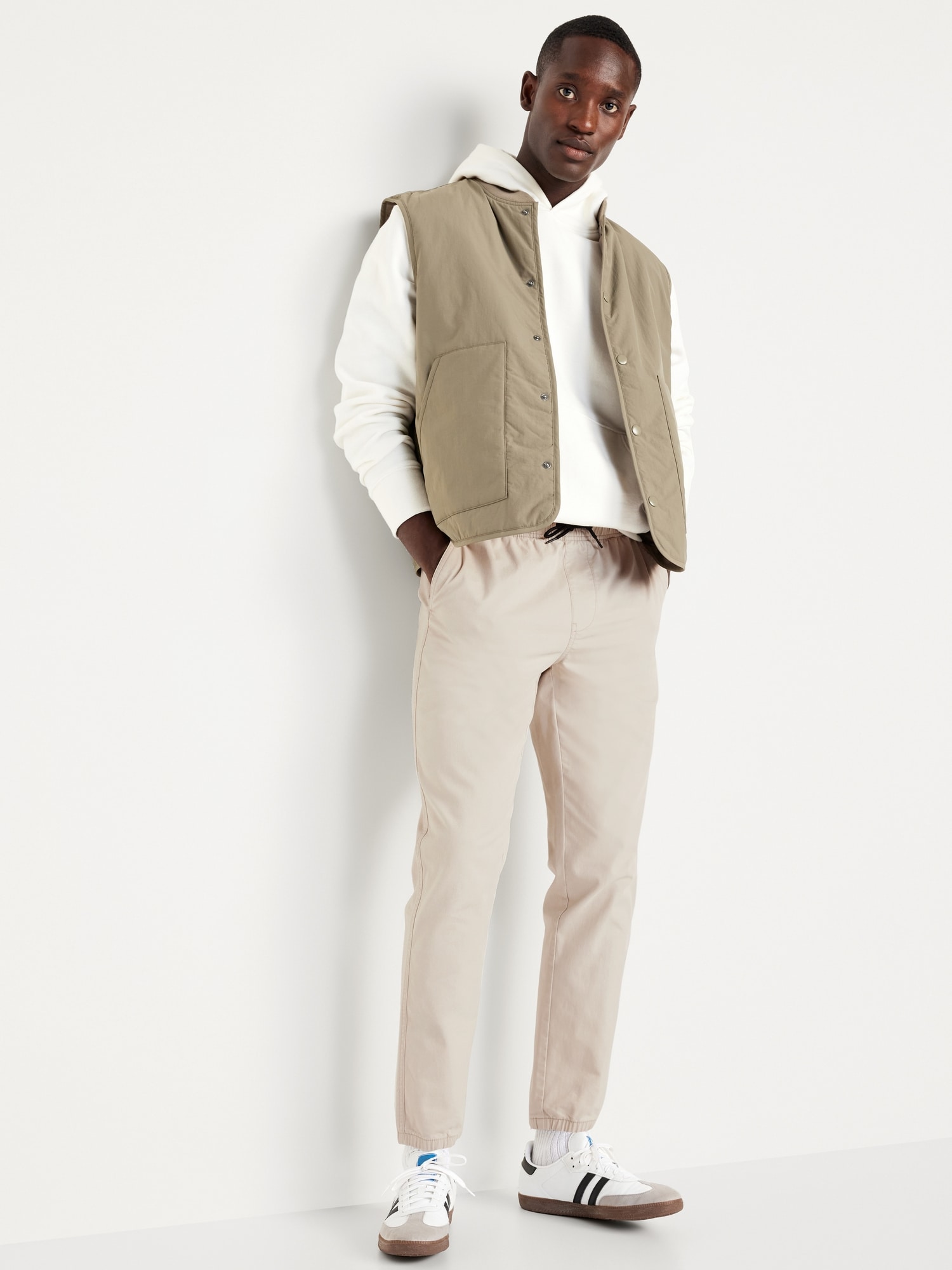 Built-In Flex Modern Jogger Pants: elasticized waistband, adjustable drawstring, faux fly, diagonal hip pockets, welt back pockets, elasticized cuffs, easy pull-on style, #598431