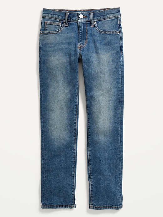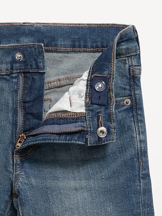 Durable medium-wash denim, with comfortable stretch and contrast topstitching.