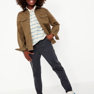 Built-In Flex Tapered Tech Pants for Boys: Elasticized waistband, with adjustable drawstirng., Faux fly., Diagonal on-seam hip pockets; vertical zippered pocket at left thigh; welt pocket at back right, with hidden zippered closure., Tapered rolled-cuff leg openings., Soft, quick-drying cotton/nylon twill., Engineered with innovative Built-In Flex stretch technology. Equal parts comfort & movement. Flexin’ on ’em., Easy pull-on style., Go-Dry moisture-wicking technology keeps him dry & comfortable., #875621