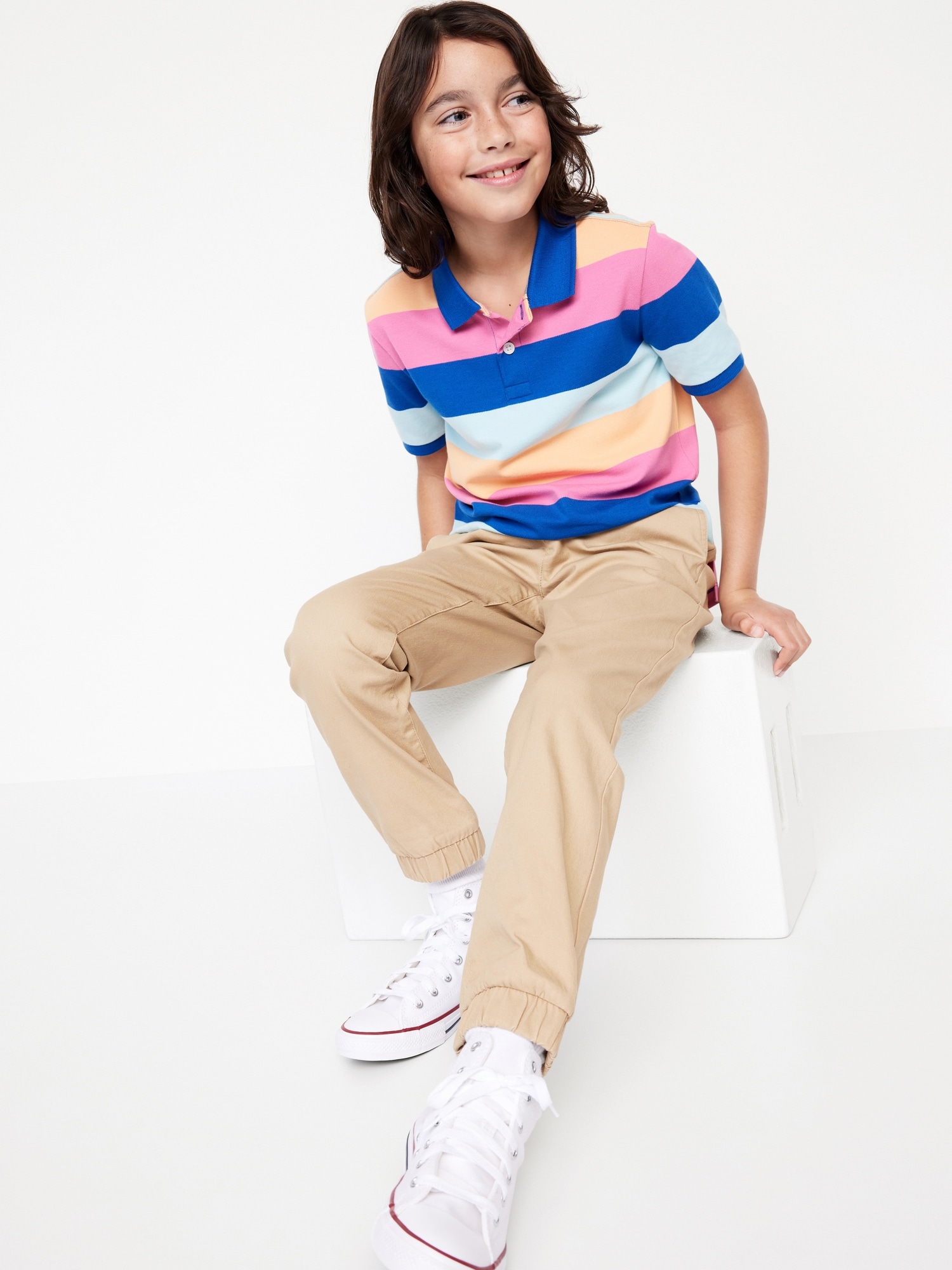 Built-In Flex Twill Jogger Pants for Boys: Online exclusive!, Elasticized comfort waistband, with adjustable drawstring., Diagonal hip pockets., Faux fly., Single welt pocket at back right., Elasticized leg cuffs., Easy pull-on style., Soft, comfy cotton twill., Engineered with innovative Built-In Flex stretch technology. Equal parts comfort & movement., #499090