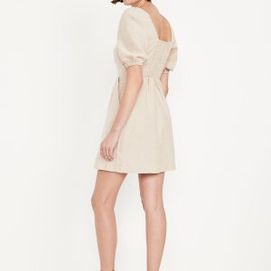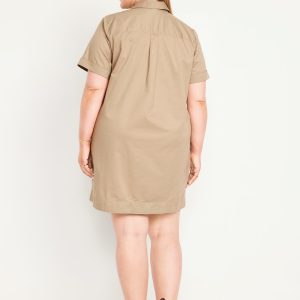 Button-Down Mini Shirt Dress: spread collar, short sleeves, side-seam pockets, patch chest pocket, full-button front, #705355